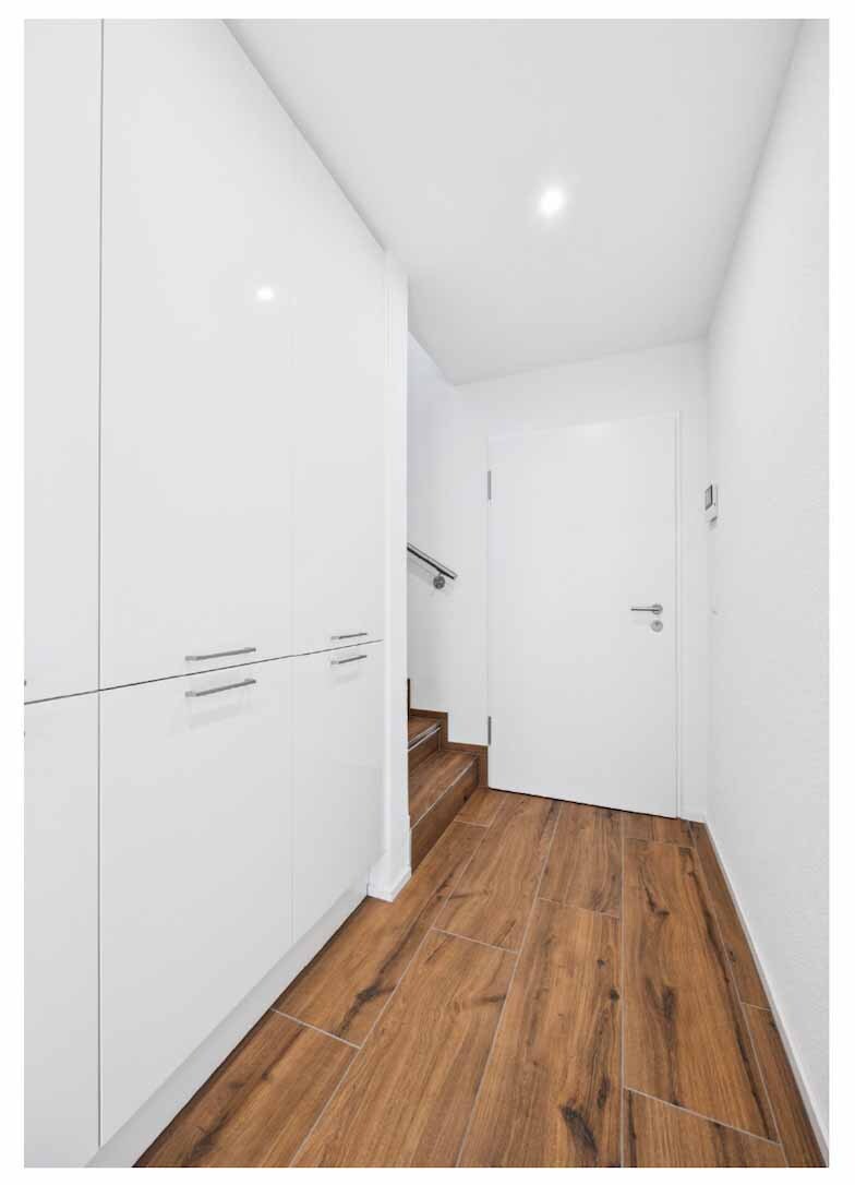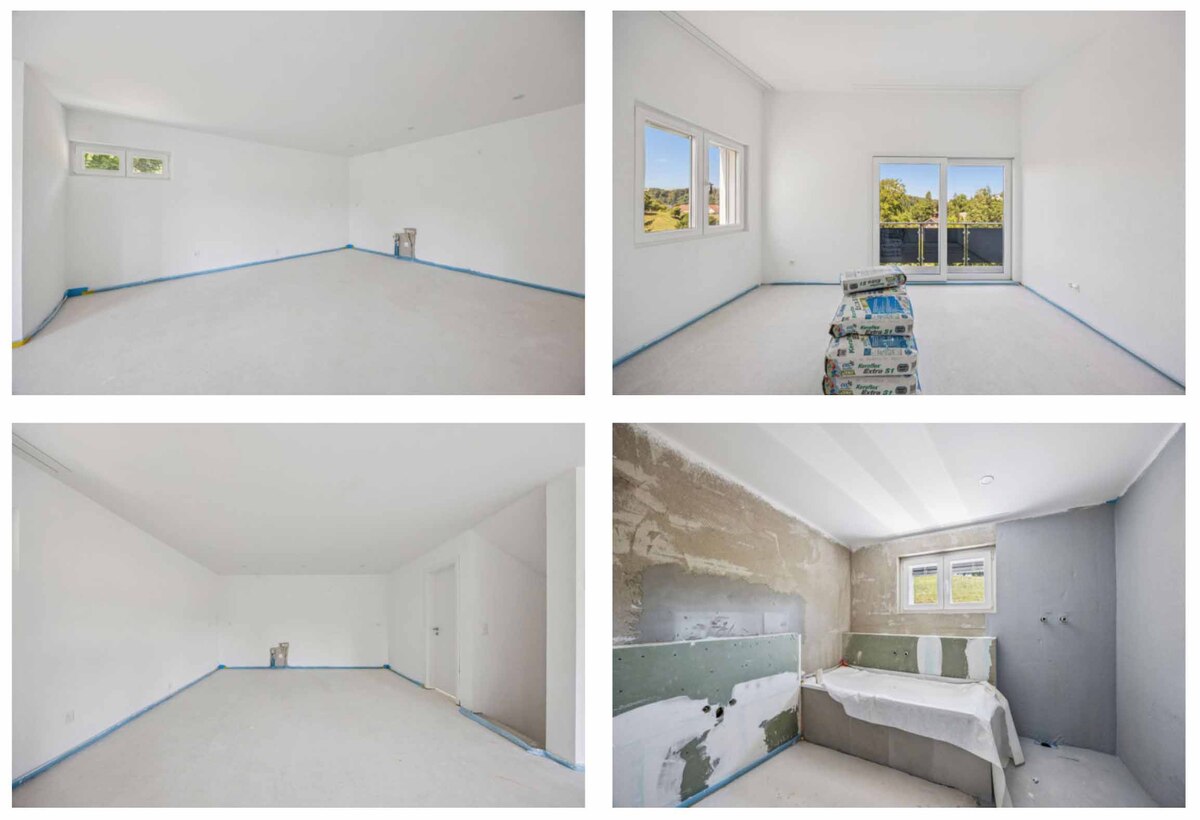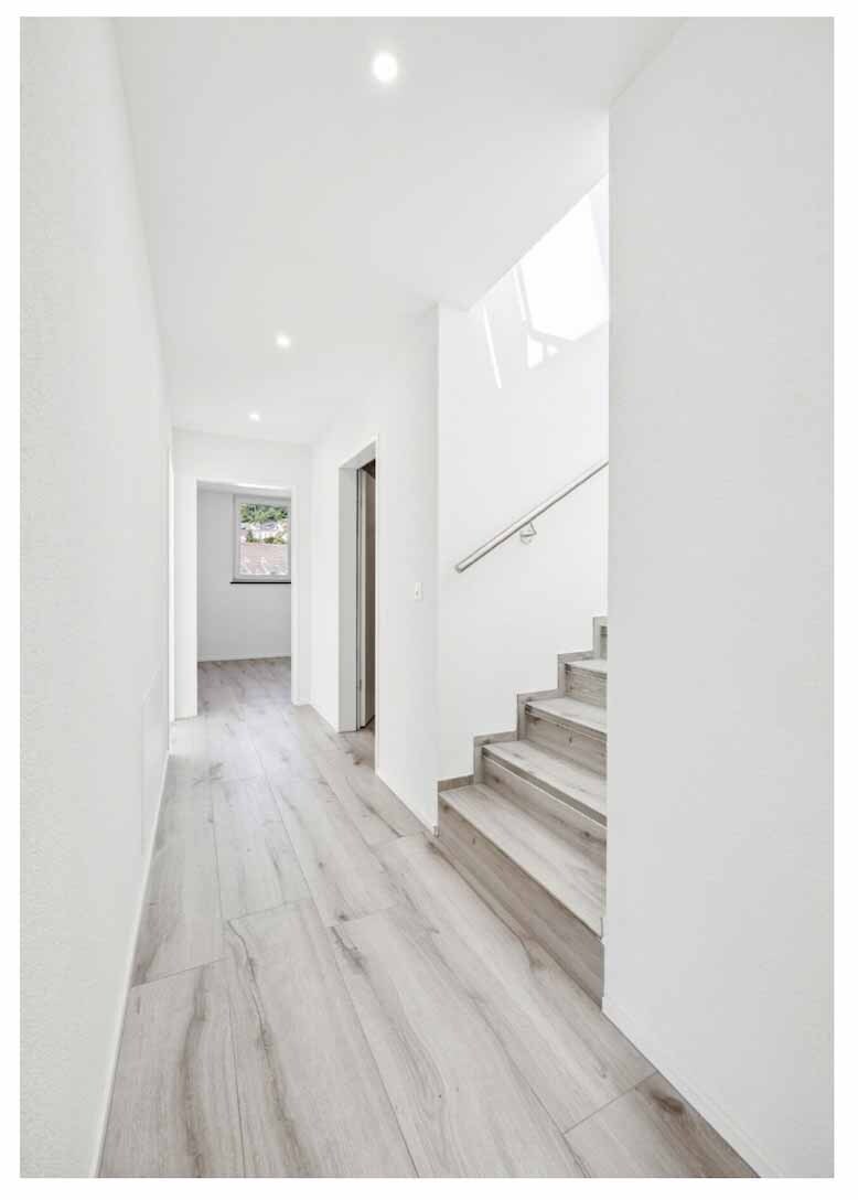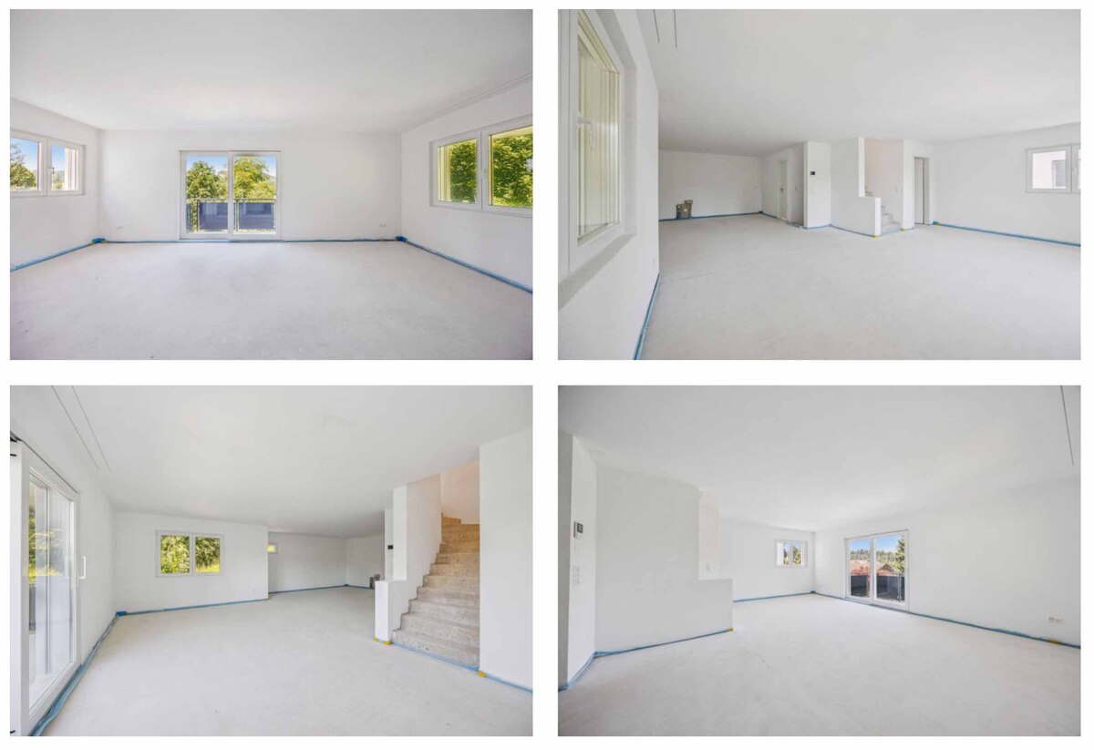 Bitte beachten Sie, dass die in der Dokumentation gezeigten Bilder visualisierte Darstellungen sind und vom tatsächlichen Bau abweichen können. Der Innenausbau kann nach eigenen Wünschen innerhalb von drei Monaten fertiggestellt werden.